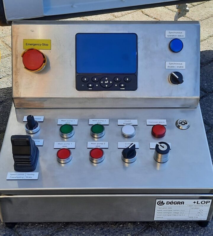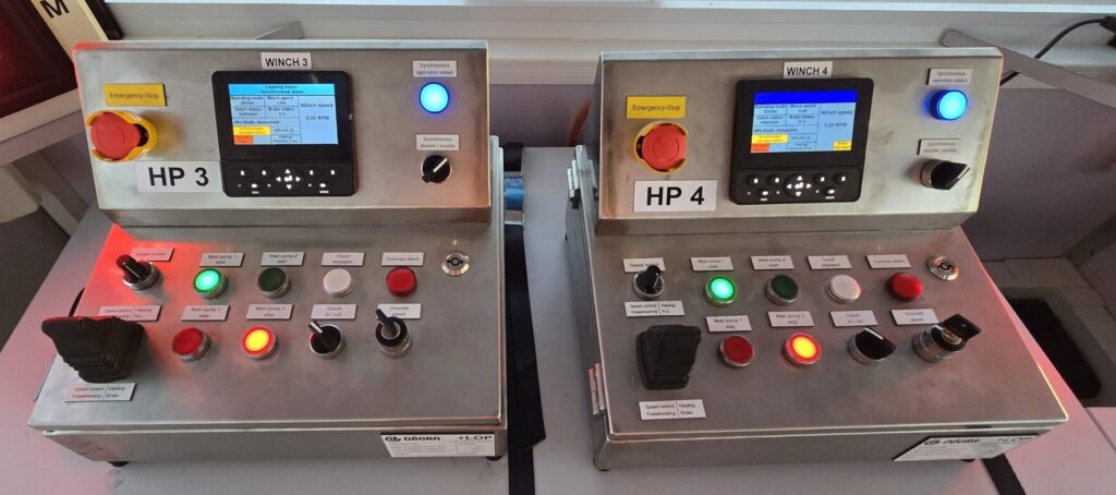 Each HPU has its own control unit and LOP (Local Operating Panel), from which the various functions of the power pack can be controlled. Unique for this system is that two LOPs can be linked together. This enables operating two HPUs simultaneously from the LOP selected as the master, allowing the connected equipment to easily operate synchronously.