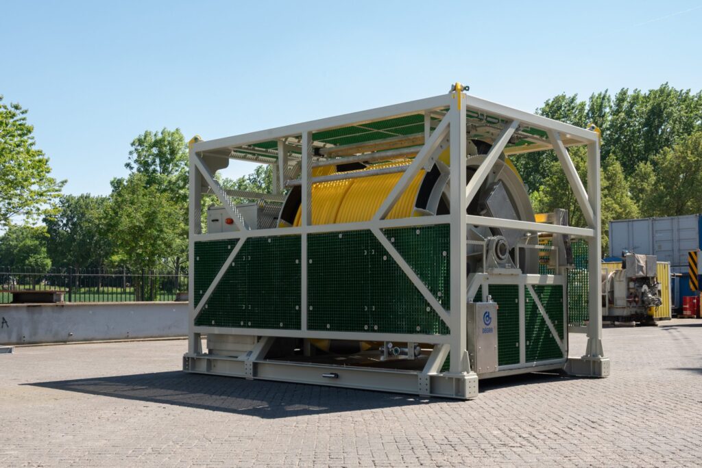 - Hydraulic operated level winder: With a Canbus encoder on the main hydraulic motor and on the shaft of the level winder, the level winder can be controlled automatically. It can also be adjusted to the diameter of the umbilical.